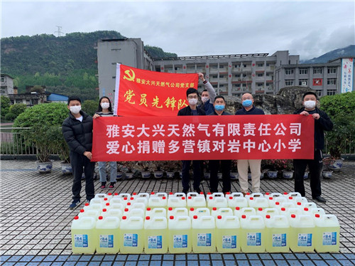4月4日,城投公司下屬子公司雅安大興天然氣有限責(zé)任公司到多營(yíng)鎮(zhèn)對(duì)巖中心小學(xué)開(kāi)展愛(ài)心捐贈(zèng)活動(dòng),此次活動(dòng)共捐贈(zèng)消毒液50余桶,主要用于校園內(nèi)防疫消殺,確保學(xué)校安全復(fù)學(xué)。