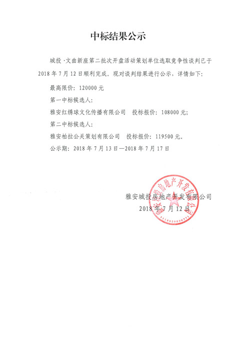 城投·文曲新座第二批次開盤活動競爭性談判中標結(jié)果公示