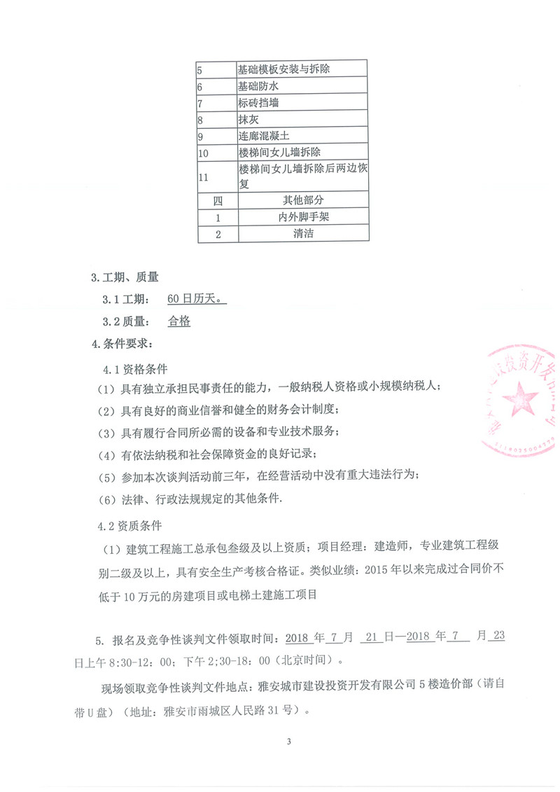 雅安科技苑小區(qū)新增電梯井道、基礎(chǔ)及附屬工程——競爭性談判
