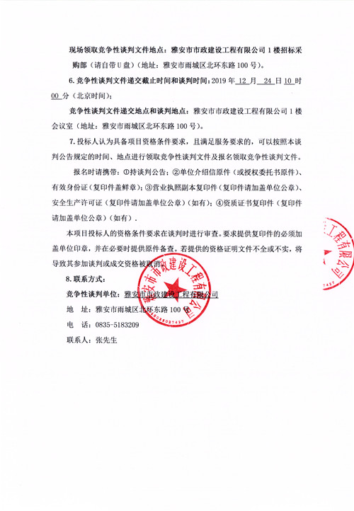 雅安市市政建設工程有限公司年度鋼材供應商競爭性談判公告(第二次)