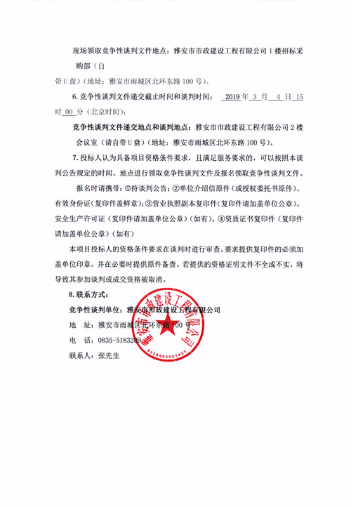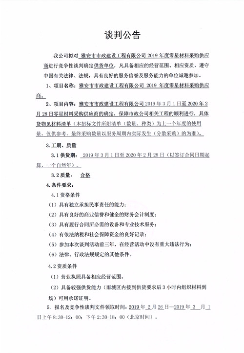 雅安市市政建設(shè)工程有限公司2019年度零星材料采購供應(yīng)商競爭性談判公告