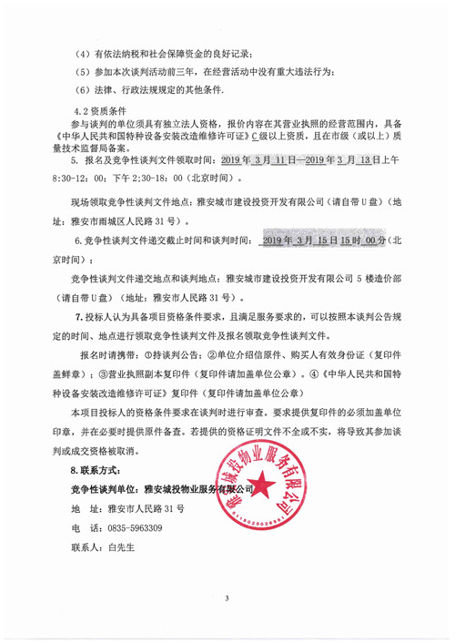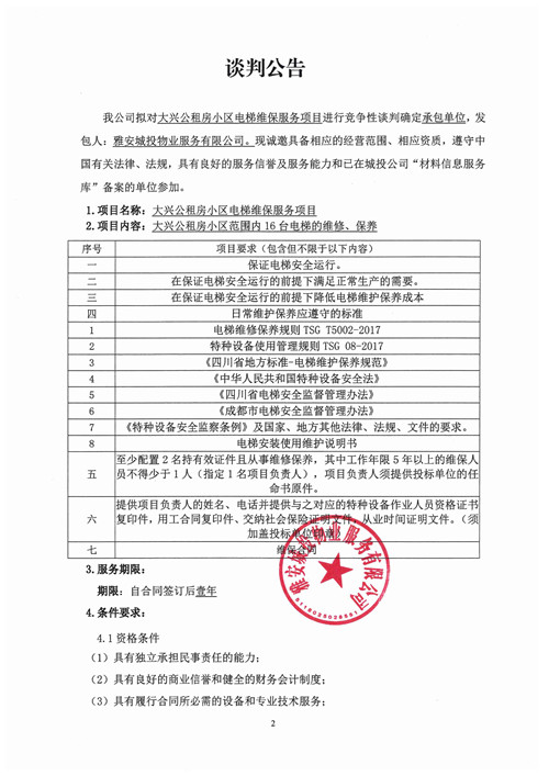 大興公租房小區(qū)電梯維保服務(wù)項(xiàng)目的競爭性談判公告