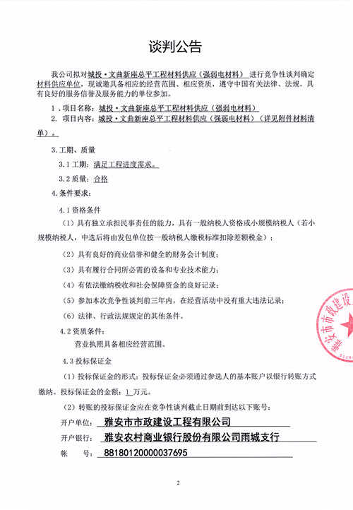 城投·文曲新座總平工程材料供應(yīng)(強(qiáng)弱電材料)競(jìng)爭(zhēng)性談判公告