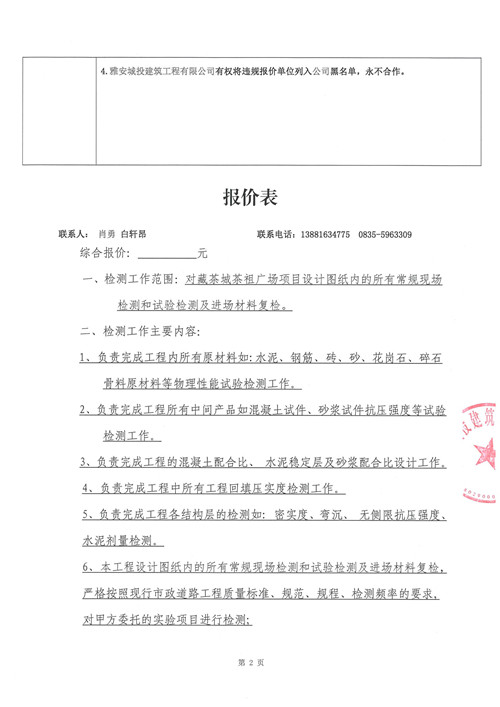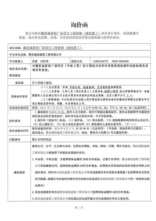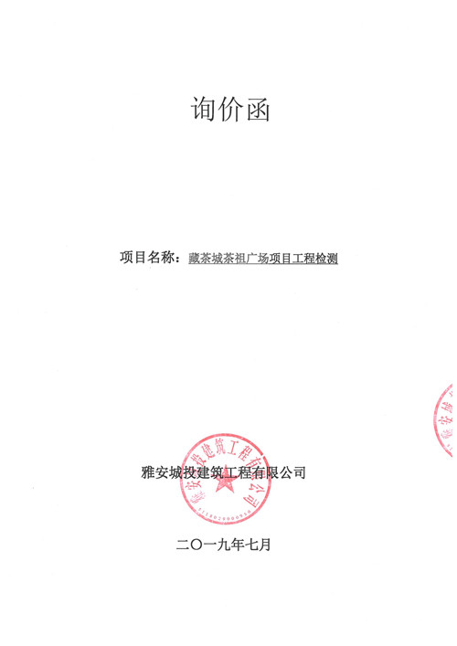 藏茶城茶祖廣場項目工程檢測詢價函