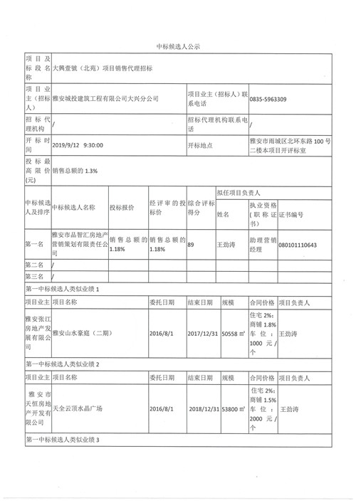 大興壹號(北苑)項(xiàng)目銷售代理招標(biāo)中標(biāo)候選人公示