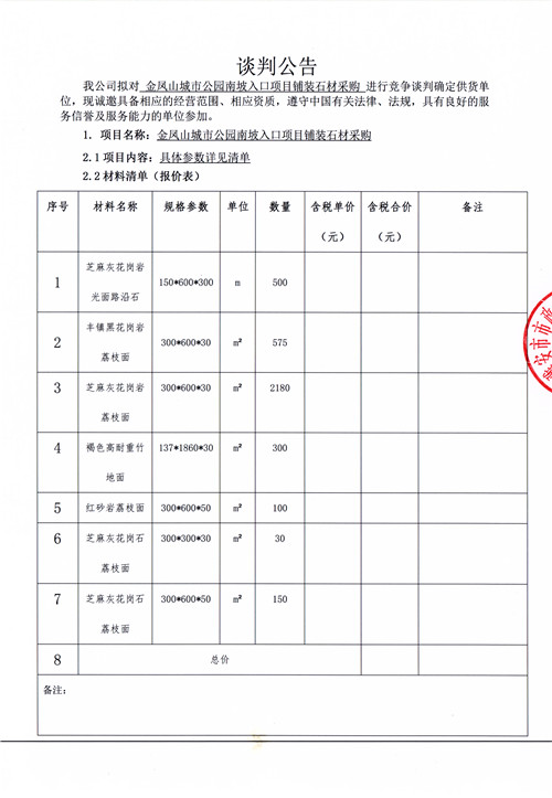 金鳳山城市公園南坡入口項目鋪裝石材采購競爭性談判公告