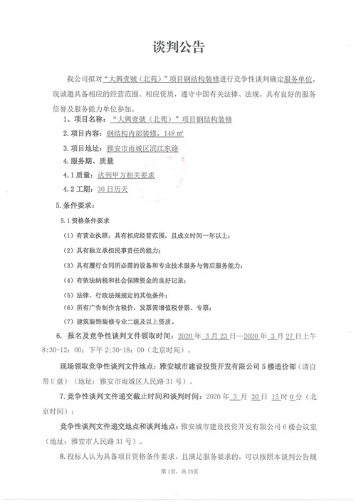 城投建工“大興壹號(北苑)”項目鋼結(jié)構(gòu)裝修競爭性談判公告