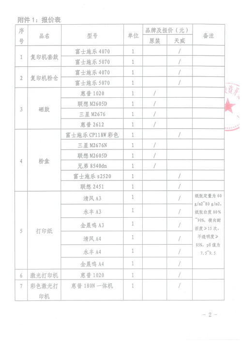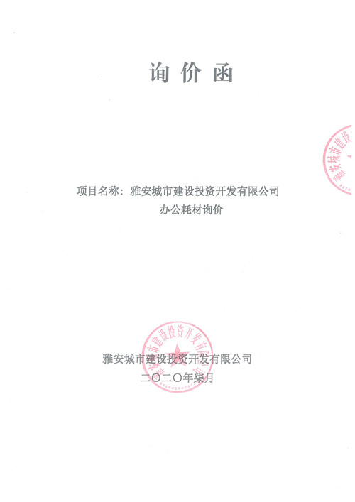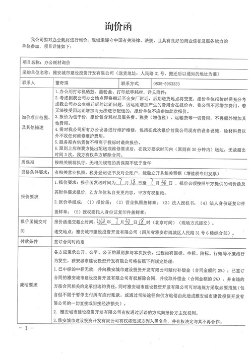 雅安城市建設(shè)投資開發(fā)有限公司辦公耗材詢價(jià)函