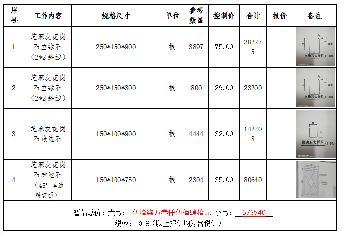 2、報(bào)價(jià)單位需提供250*150*300芝麻灰花崗石樣品,樣品在開(kāi)標(biāo)之前送達(dá)。