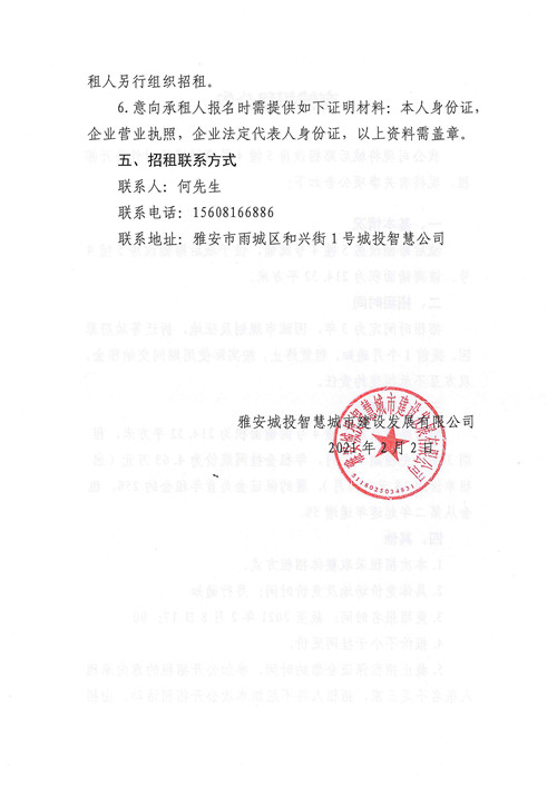 雅安城投智慧城市建設(shè)發(fā)展有限公司商鋪招租公告