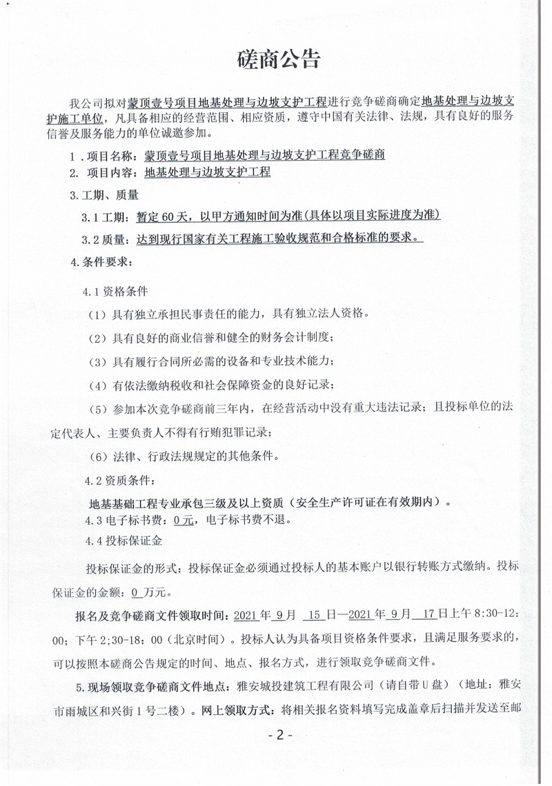 蒙頂壹號項(xiàng)目地基處理與邊坡支護(hù)工程競爭磋商公告