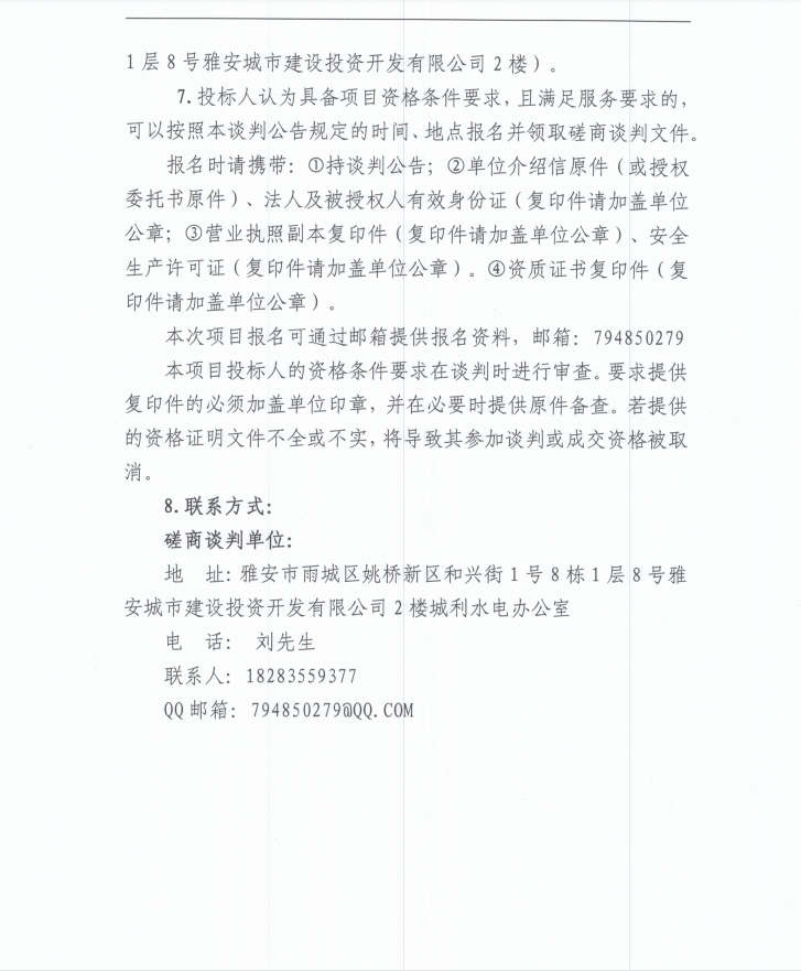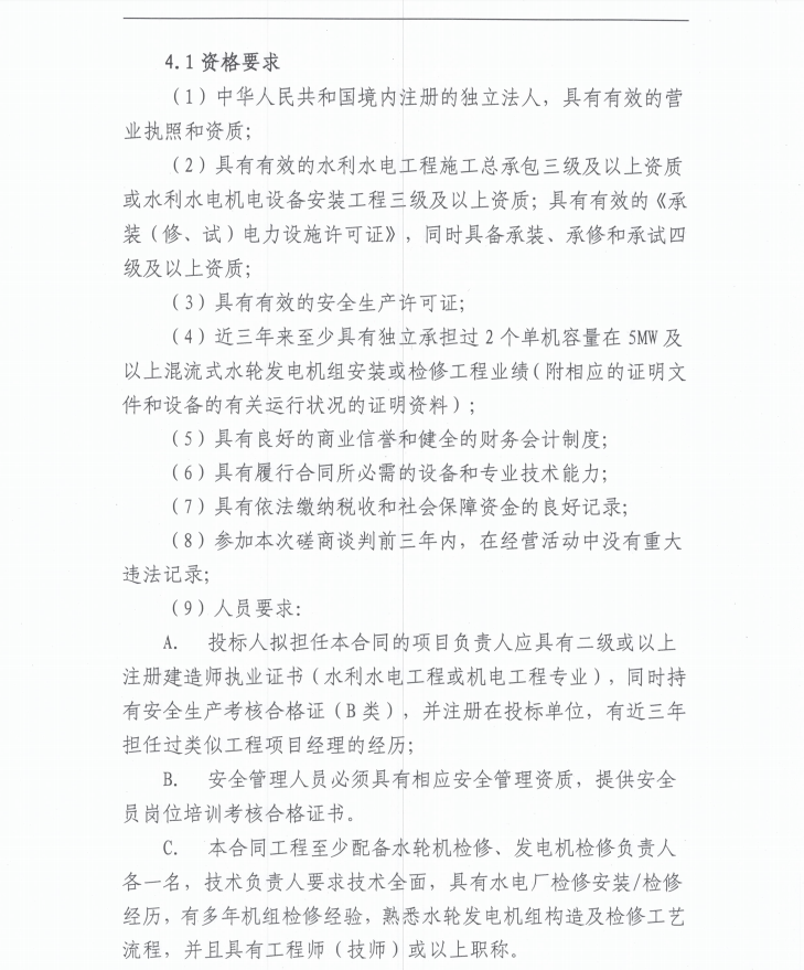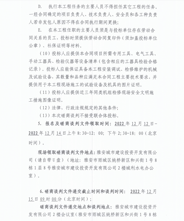 雅安城利水電公司2022年度水輪發(fā)電機組檢修工程(第二次)磋商談判公告