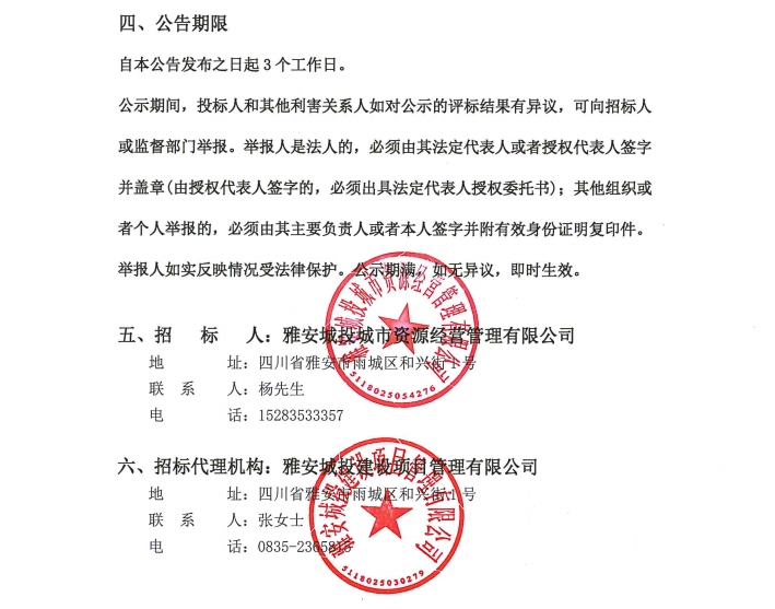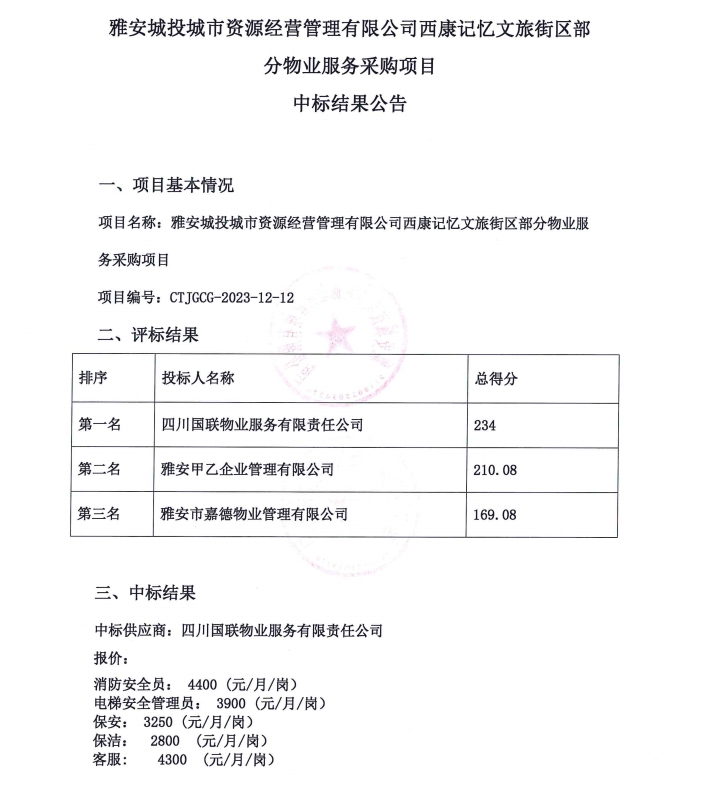 雅安城投城市資源經(jīng)營管理有限公司西康記憶文旅街區(qū)部分物業(yè)服務(wù)采購項(xiàng)目中標(biāo)結(jié)果公告