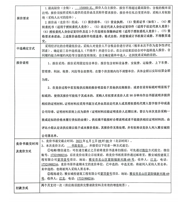 蒙頂壹號(hào)項(xiàng)目垃圾和抽糞處理服務(wù)競價(jià)公告