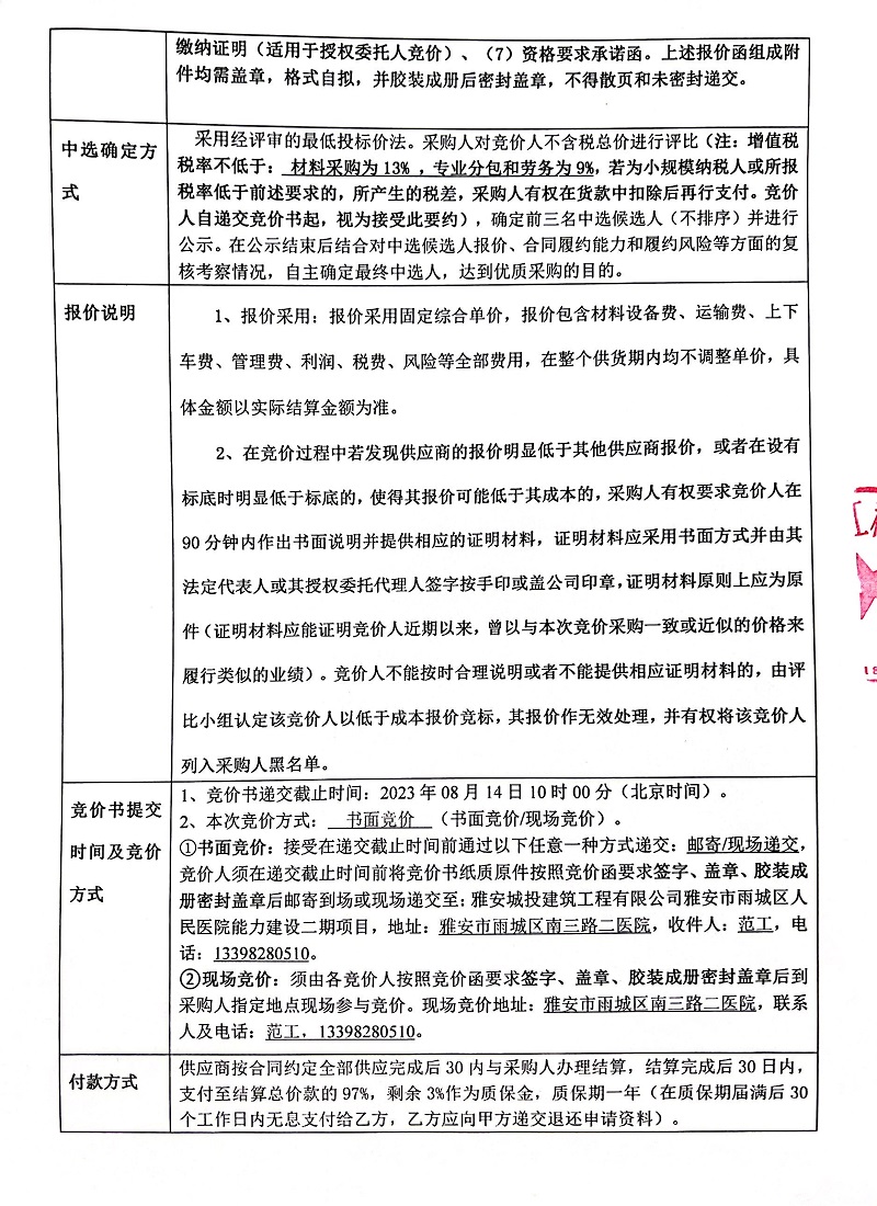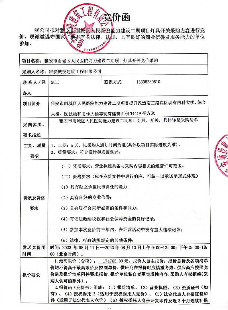 雅安市雨城區(qū)人民醫(yī)院能力建設二期項目燈具開關采購競價公告