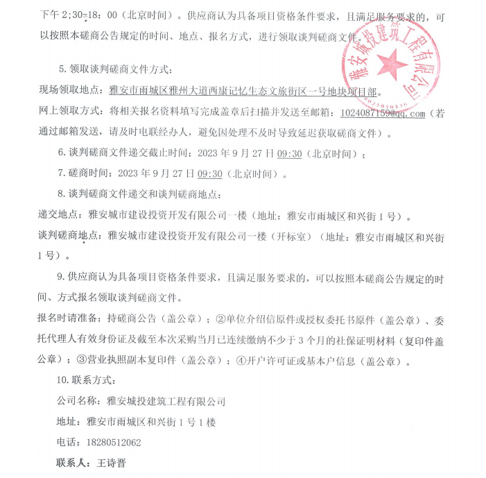 雅安市西康記憶生態(tài)文旅街區(qū)項目一號地塊項目景觀小品雕塑采購談判磋商公告