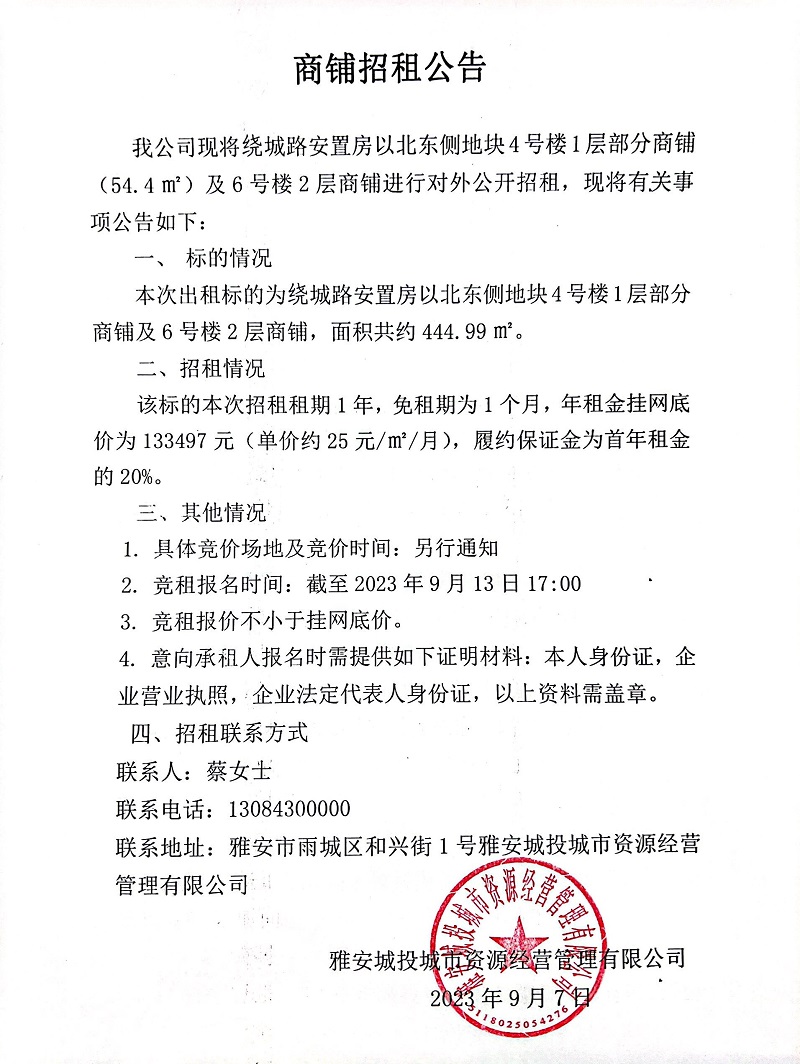 繞城路安置房以北東側(cè)地塊4號樓1層部分商鋪招租公告