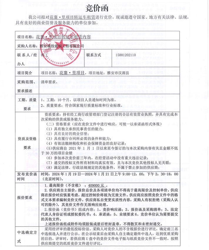 花襄·里項(xiàng)目轉(zhuǎn)運(yùn)車租賃競(jìng)價(jià)公告