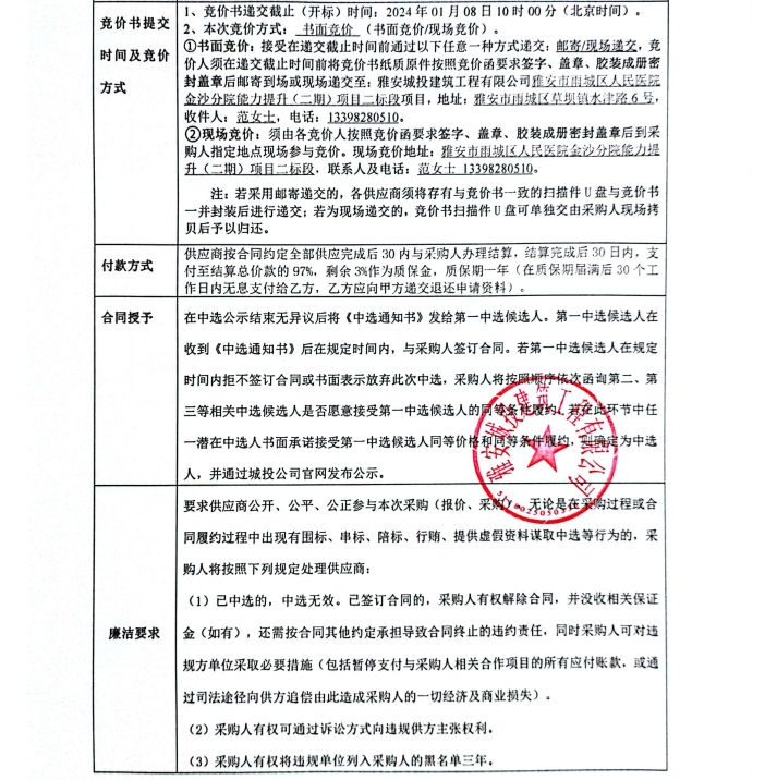 雅安市雨城區(qū)人民醫(yī)院金沙分院能力提升(二期)項目二標段潔具采購競價公告