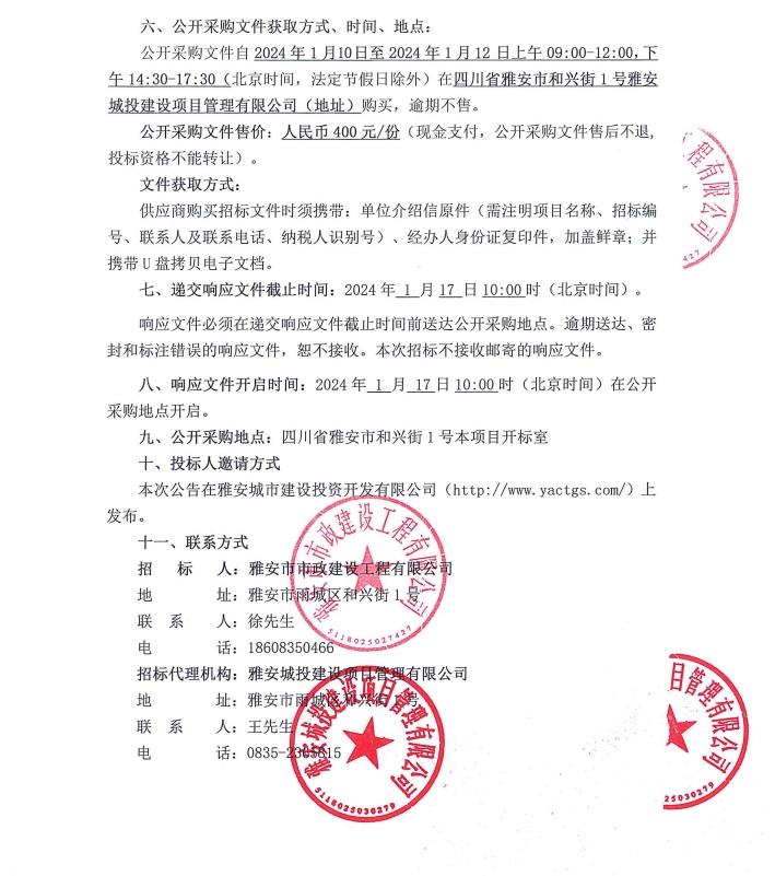 雅安市市政建設(shè)工程有限公司市政公用工程施工總承包升壹級資質(zhì)提升咨詢服務(wù)采購項目公開采購邀請公告
