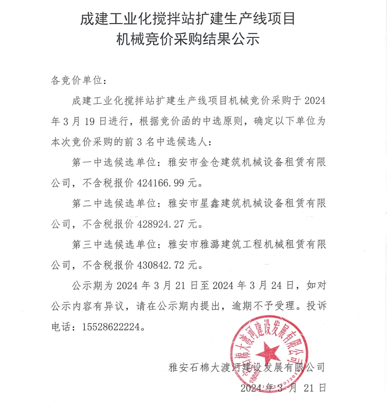 成建工業(yè)化攪拌站擴(kuò)建生產(chǎn)線項(xiàng)目機(jī)械競(jìng)價(jià)采購結(jié)果公示