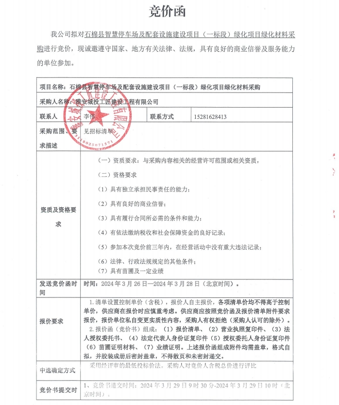 石棉縣智慧停車場(chǎng)及配套設(shè)施建設(shè)項(xiàng)目(一標(biāo)段)綠化項(xiàng)目綠化材料采購(gòu)競(jìng)價(jià)公告