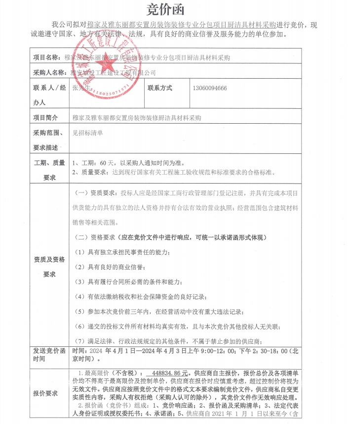穆家及雅東麗都安置房裝飾裝修專業(yè)分包項(xiàng)目廚潔具材料采購競價(jià)公告