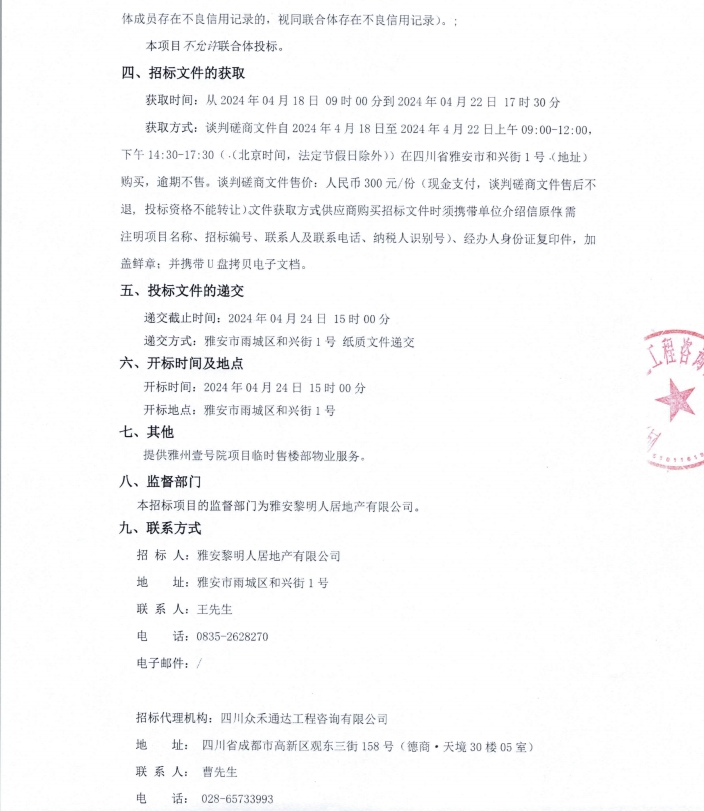 雅州壹號院項(xiàng)目臨時售樓部物業(yè)服務(wù)采購項(xiàng)目公告