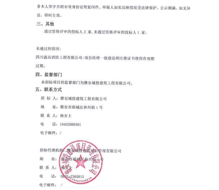 花襄·里項目消防工程專業(yè)分包(第三次)中標候選人公示