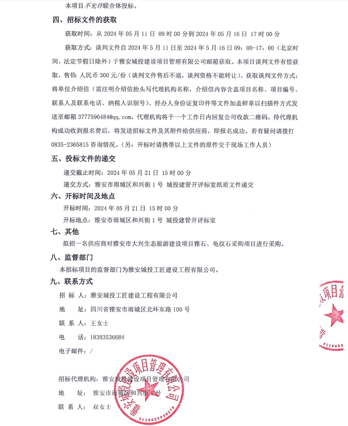 雅安市大興生態(tài)旅游建設(shè)項(xiàng)目雅石、龜紋石采購項(xiàng)目公告