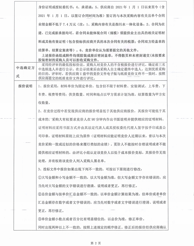 美羅鎮(zhèn)一體化設(shè)備競價(jià)函