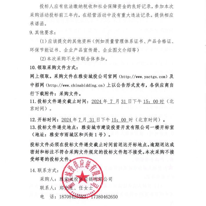 2024年7月-2025年6月雅安城投供應(yīng)鏈有限公司鋼材集中采購公告