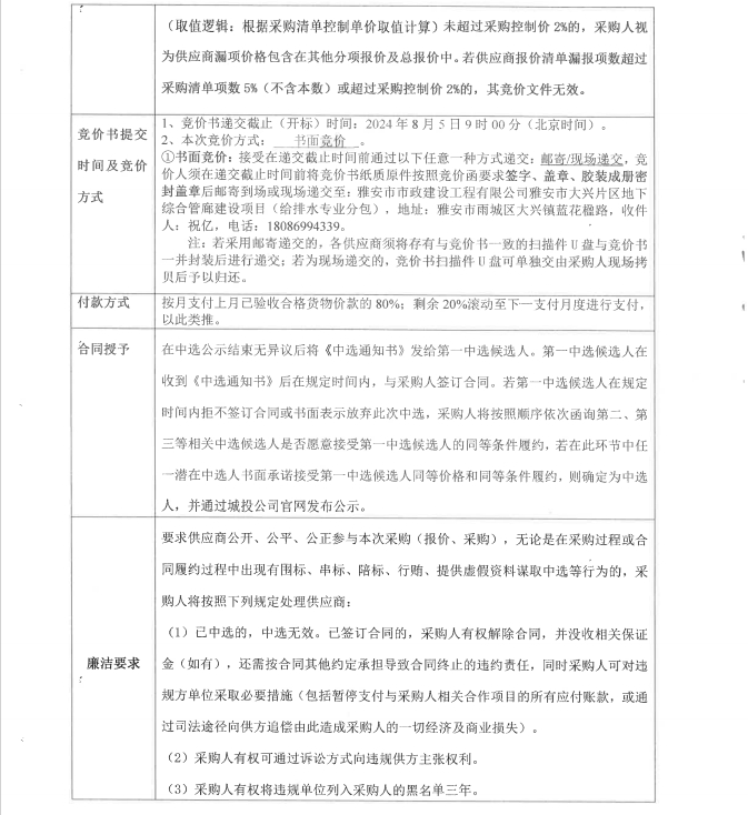 雅安市大興片區(qū)地下綜合管廊建設(shè)項(xiàng)目給排水專業(yè)分包管配件及閘閥材料采購競價(jià)公告