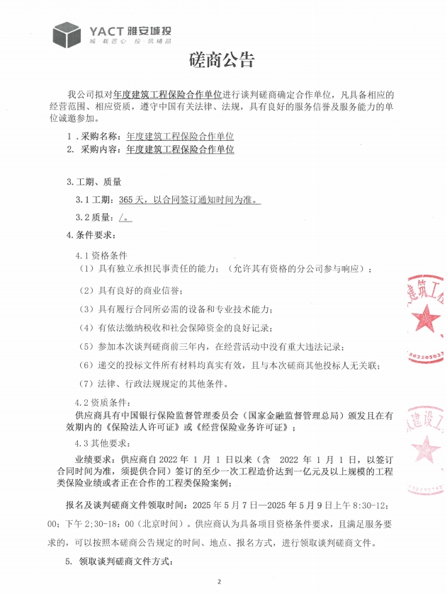 年度建筑工程保險(xiǎn)合作單位磋商公告