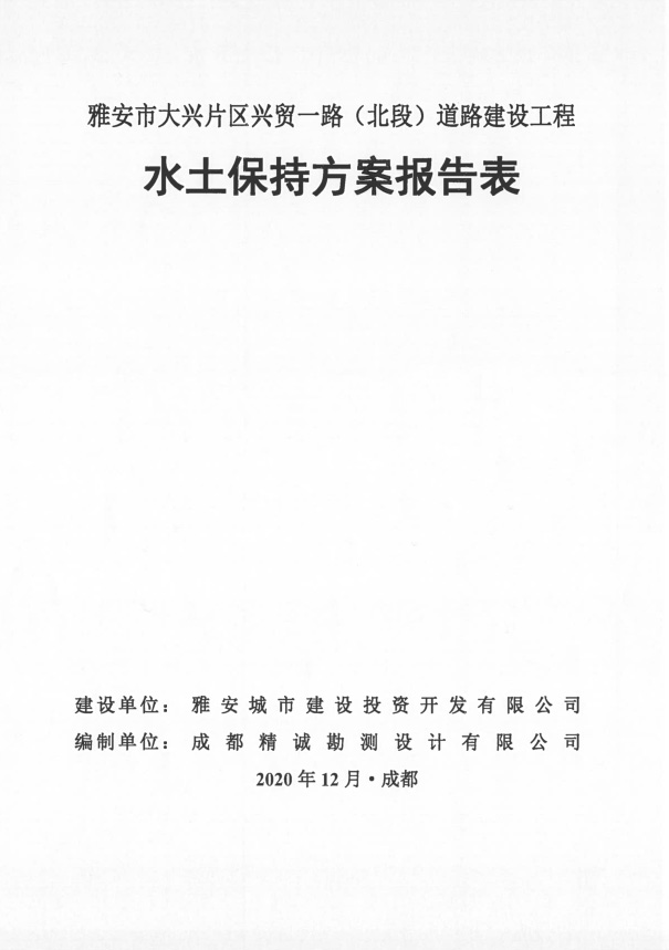 雅安市大新片區(qū)興貿(mào)一路(北段)道路建設工程水土保持方案